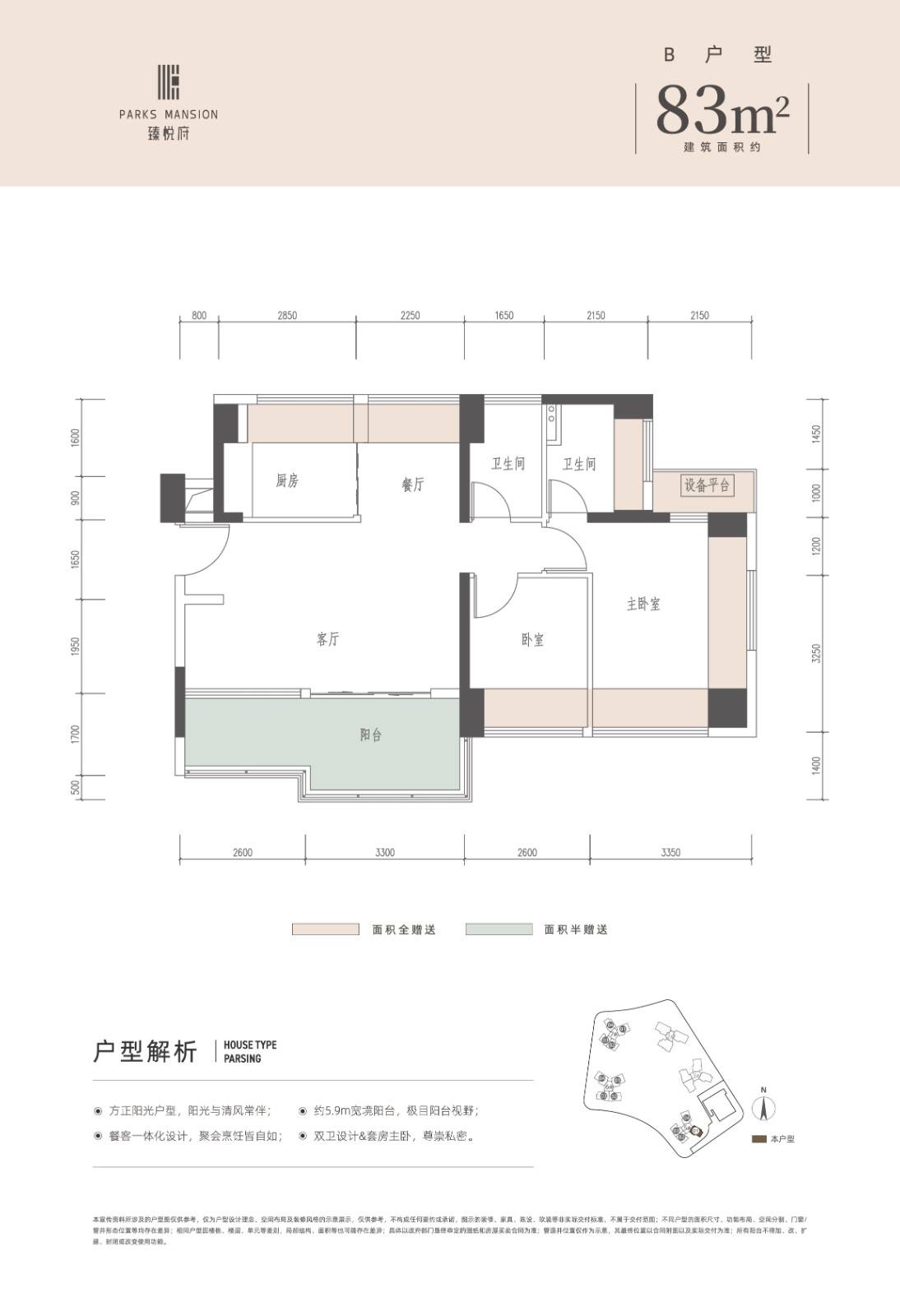 建筑面积: 83㎡(3房2厅2卫)
